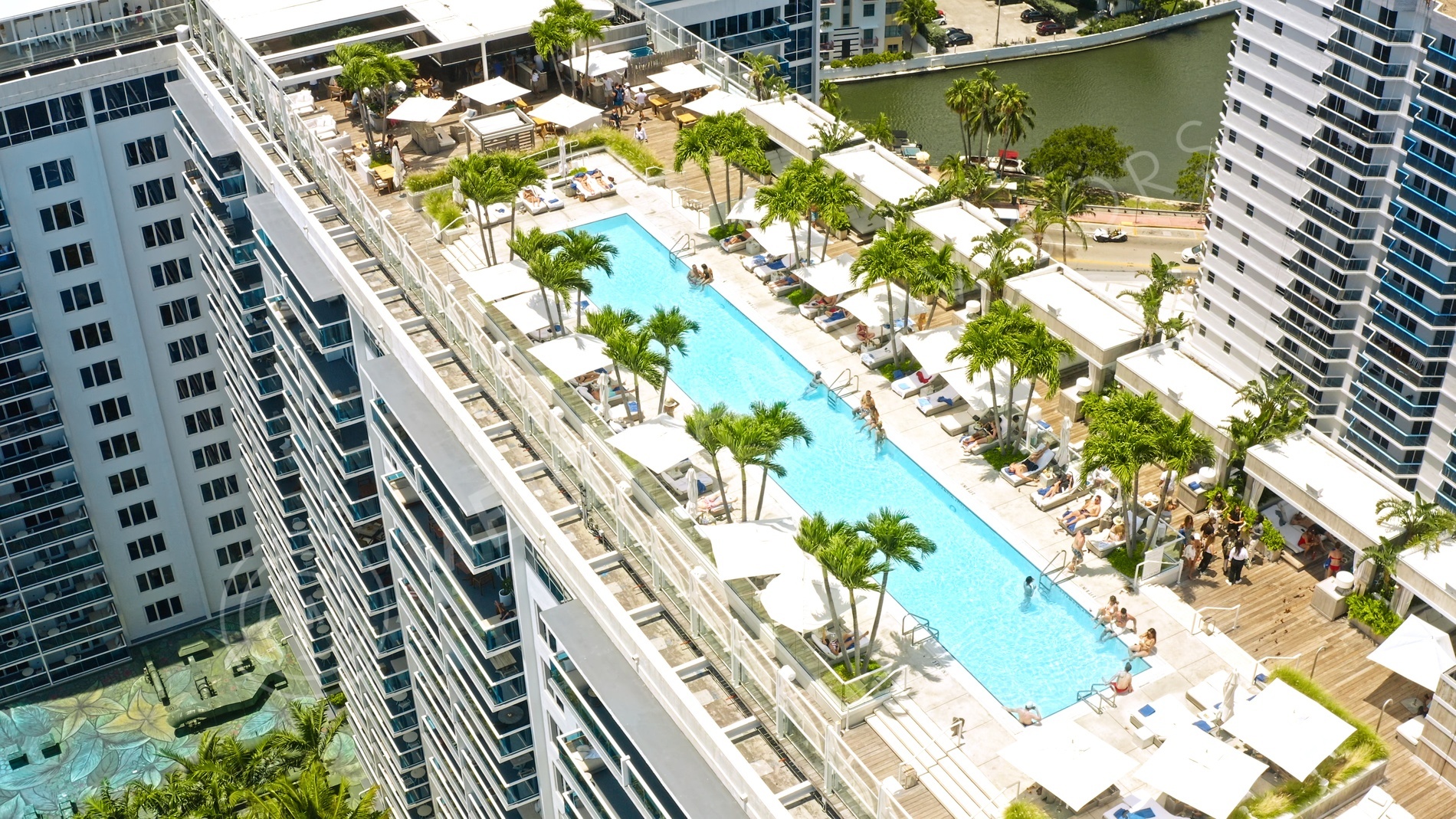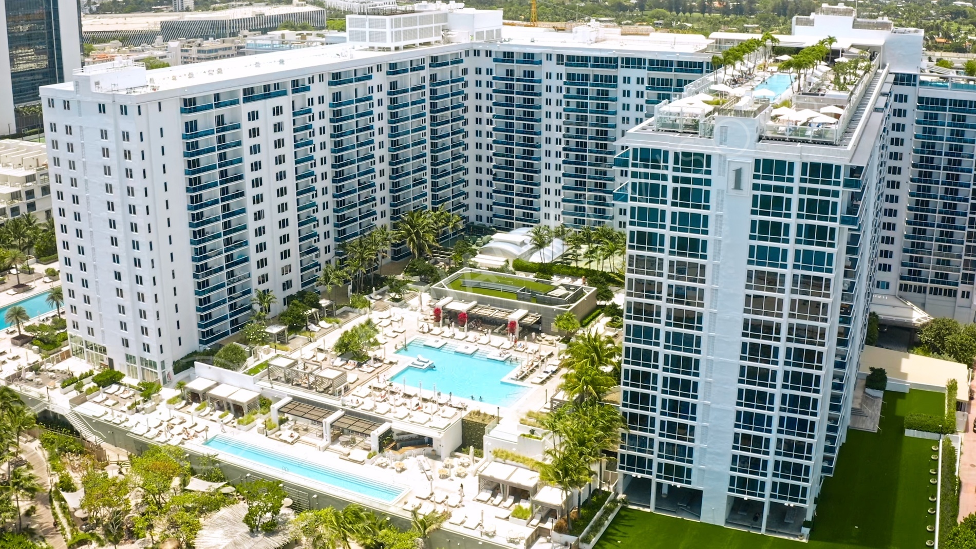 - Four swimming pools, including the hotel's stunning rooftop pool and restuarant-bar with panoramic views of the ocean and Miami City Skyline