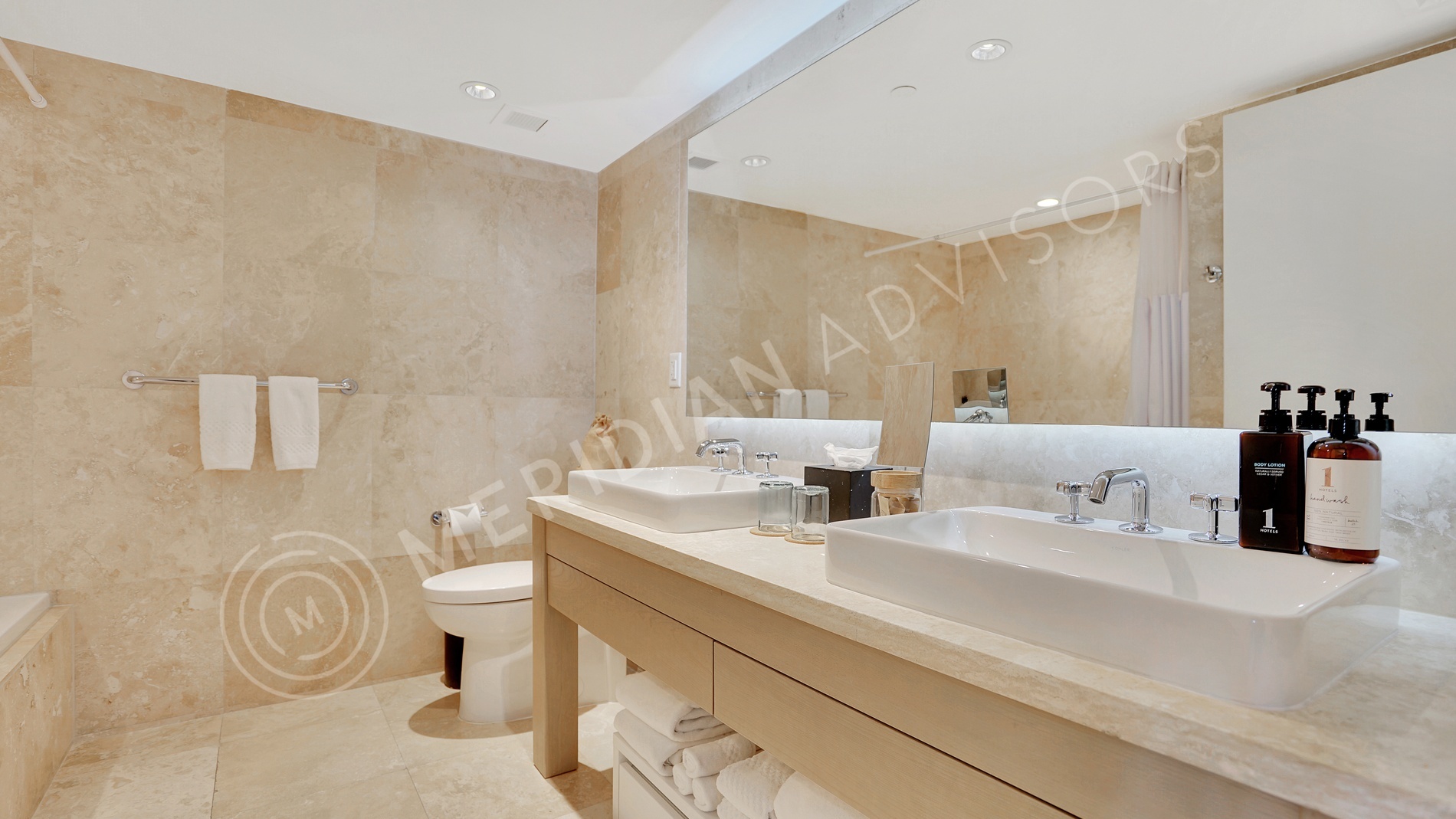 - Bathrooms finished in beautiful, floor-to-ceiling travertine with leedtm compliant fixtures by waterworks and dual-flush toilets