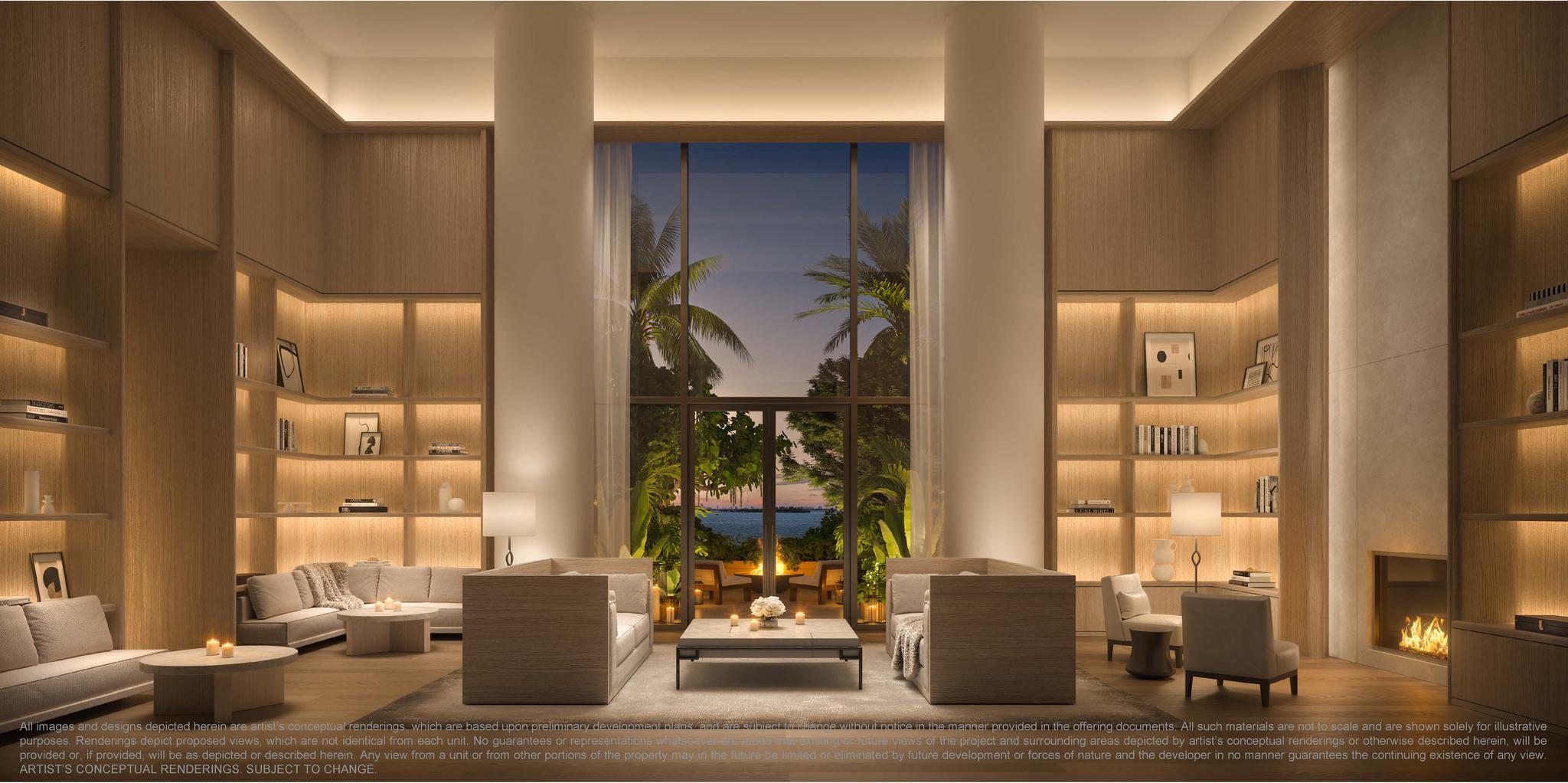 • Library and social lounges leading to bayfront garden terraces with private fireside lounges