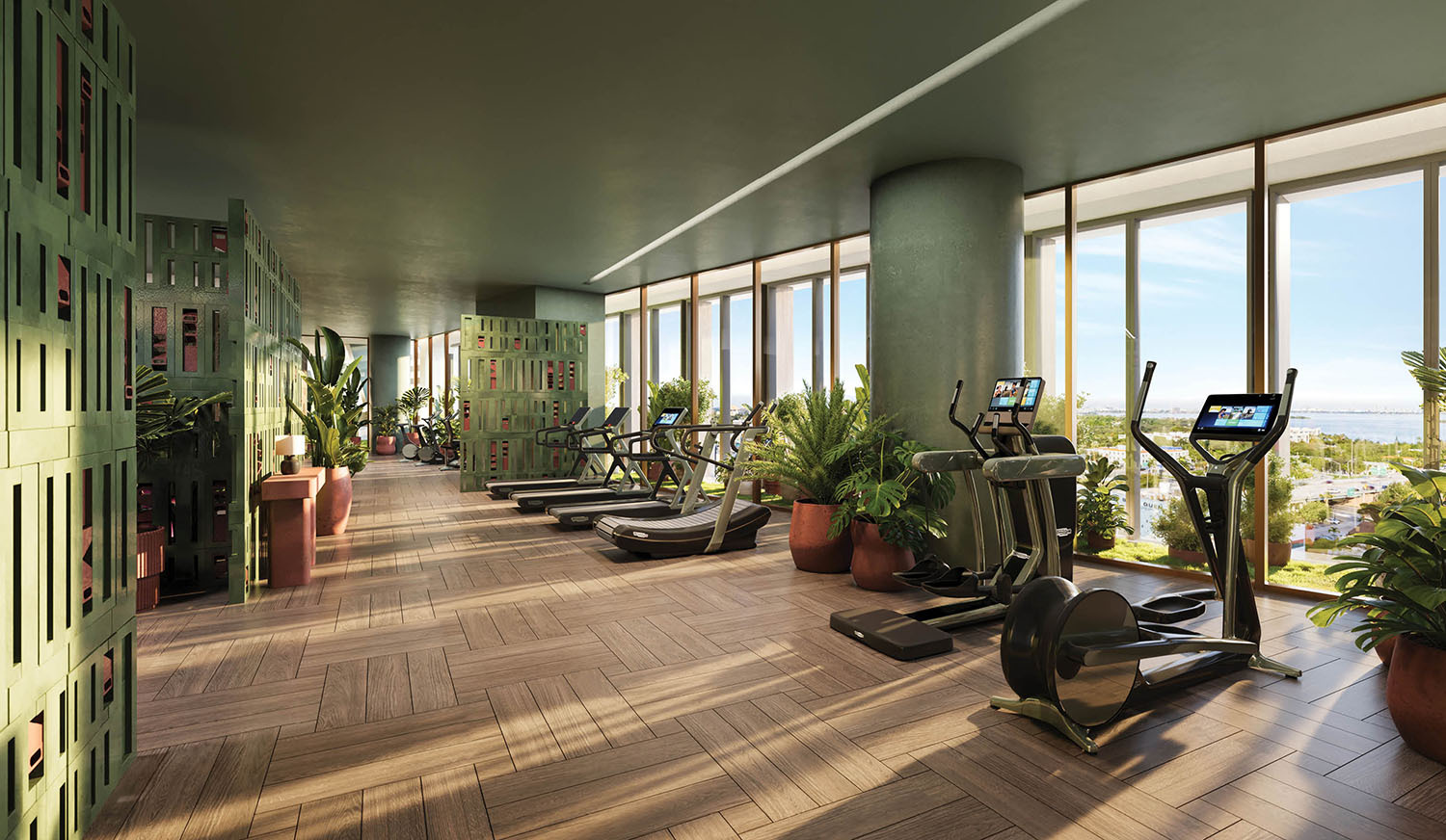 - Level 5 business lounge and coworking with conference rooms, podcast studio, art gallery, residents’ lounge, and bar.