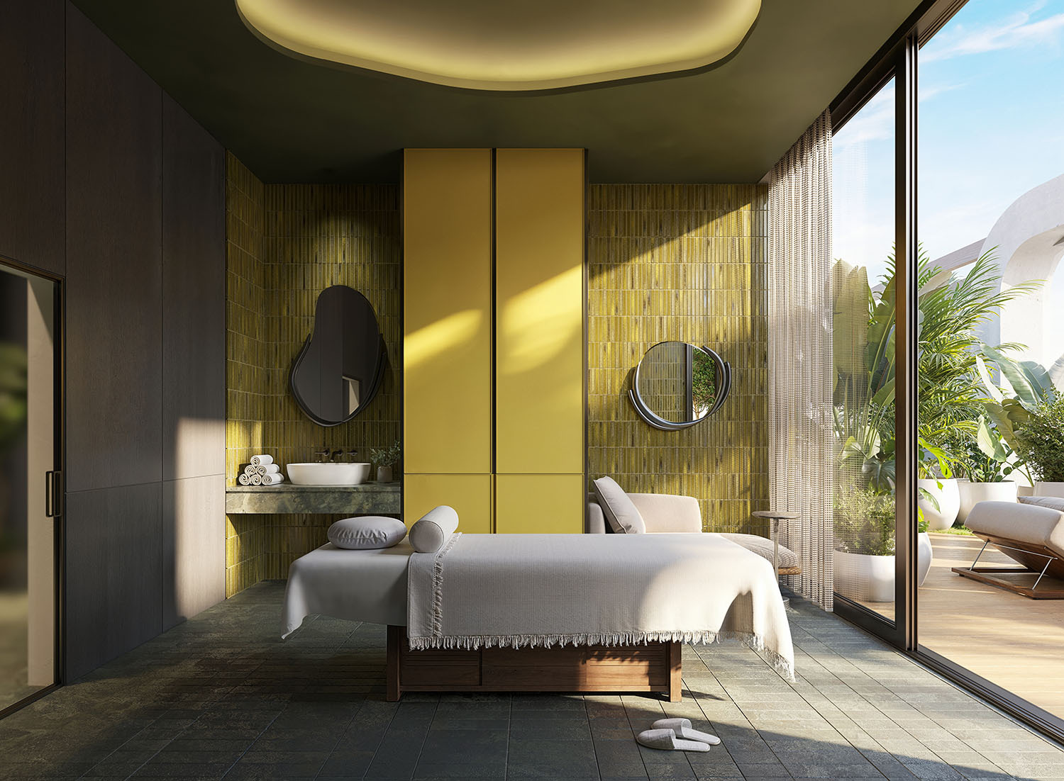 - Dedicated spa zone featuring infrared sauna, steam room, hot and cold plunge pools, healing garden, and tranquil treatment rooms.